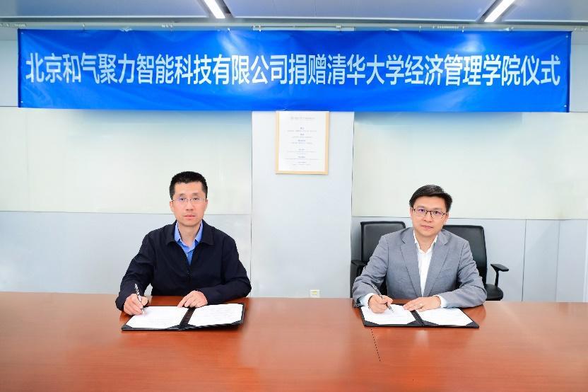 2025年4月28日,在清华大学114周年校庆、经管学院41周年院庆之际,北京和气聚力智能科技有限公司(以下简称“和气聚力”)捐赠仪式在清华经管学院李华楼举行。此次捐赠包括三款和气聚力自主研发的人工智能产品,包括专为清华大学定制开发的“AI学位论文格式检测平台”“AI 论文助手”“AI 小力作文学伴”,以及一台用于软件属地化部署的大模型一体机,这些产品将用于支持学院学术研究和教学创新实践。清华经管学院副院长徐心教授与和气聚力创始人兼董事长洪晓丹(清华电子系2001级校友)签署捐赠协议,学院MBA教育中心主任马嘉、和气聚力联合创始人兼执行副总裁马铭(MBA2019级校友)等出席仪式。